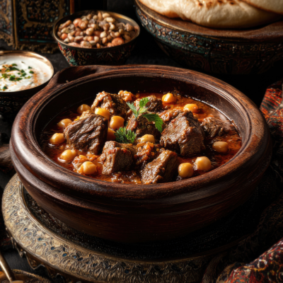 | > Quel vin ? > Nombre de personnes ?  6 personnes. Ingrédients : • 1,5 kg d’agneau (épaule ou collier, coupé en morceaux) • 2 oignons émincés • 2 gousses d’ail hachées • 250 g de pruneaux dénoyautés • 80 g d’amandes entières mondées • 1 c. à soupe de miel • 1 c. à café de cannelle • 1 c. à café de gingembre en poudre • 1 pincée de safran (ou curcuma) • 1 bouquet de coriandre fraîche • 3 c. à soupe d’huile d’olive • Sel, poivre • 1 litre de bouillon de légumes ou d’agneau Préparation : • Dans une grande cocotte ou un plat à tajine, faire revenir les morceaux d’agneau dans l’huile d’olive jusqu’à ce qu’ils soient bien dorés. • Ajouter les oignons, l’ail, les épices (cannelle, gingembre, safran), sel et poivre. Mélanger et laisser suer quelques minutes. Verser le bouillon et laisser mijoter à feu doux environ 1h30. • Ajouter les pruneaux et le miel, poursuivre la cuisson 30 minutes supplémentaires. • Pendant ce temps, faire griller légèrement les amandes à la poêle sans matière grasse. • Au moment de servir, parsemer d’amandes grillées et de coriandre fraîche. Bonne dégustation  |