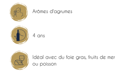 À apprécier avec du foie gras, des fruits de mer, du poisson en papillote ou grillé.